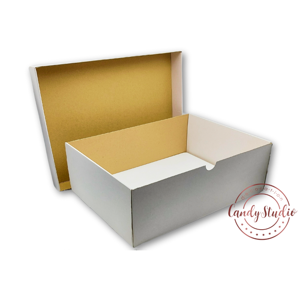 Unser eckiger Tortenkarton mit Deckel ist die perfekte Lösung für den Transport und die Präsentation Ihrer köstlichen Kreationen. Mit einer großzügigen Größe von 32x42cm und einer Höhe von 13cm bietet dieser Karton ausreichend Platz für Ihre Torten und Kuchen.