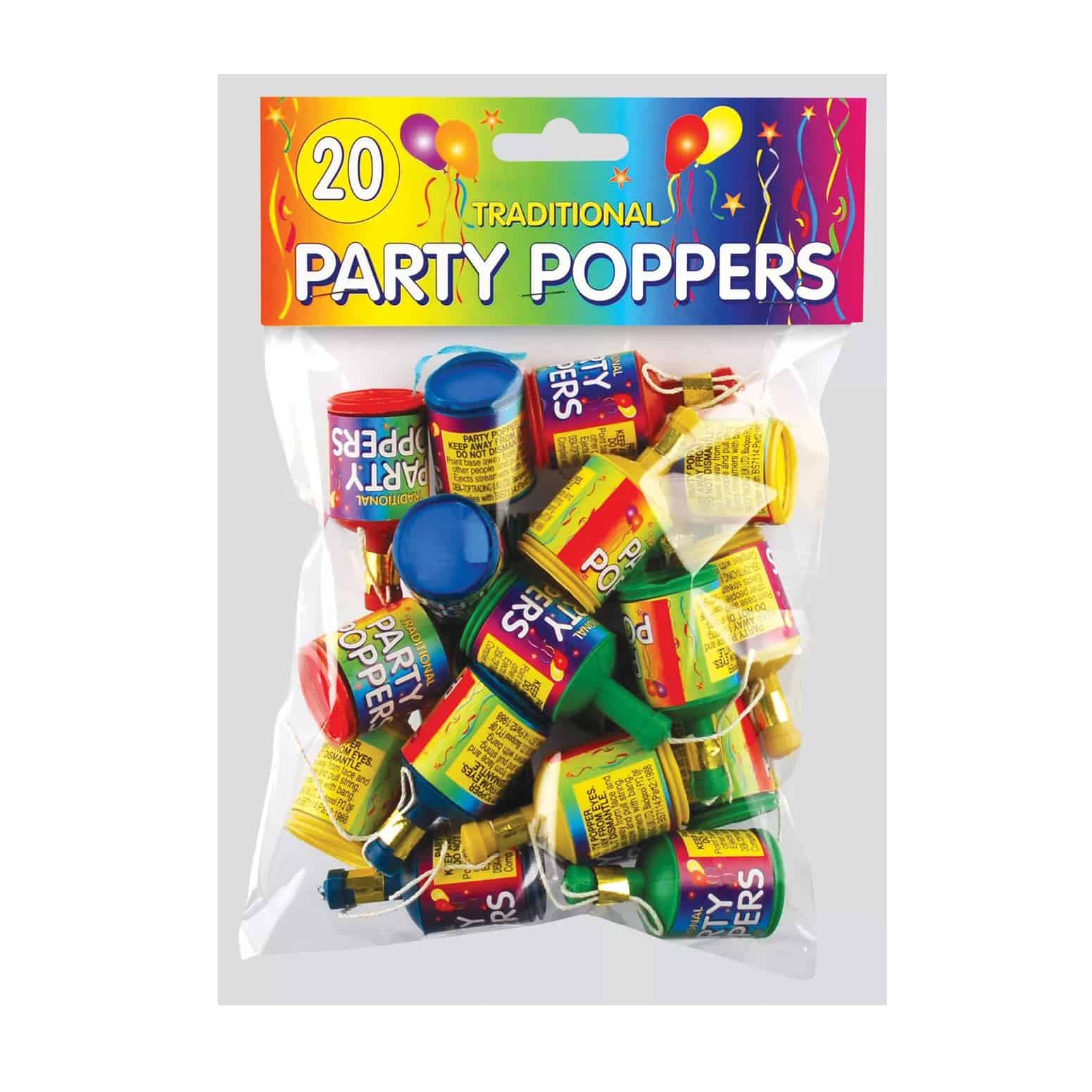 A great value party essential, these colourful Party Poppers come as a pack of 20 in various colours and are sure to delight your guests and set your celebration off with a bang.