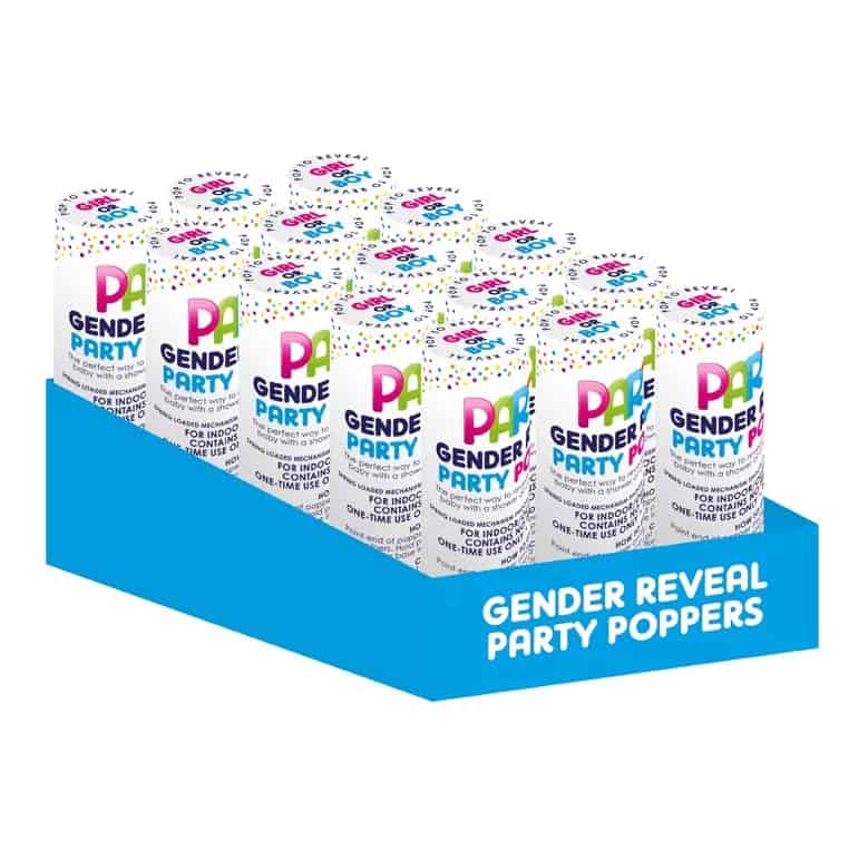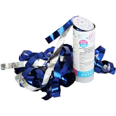 Family and friends will not know what colour confetti is going to cascade out of the cannon, revealing a confetti explosion. (Each cannon has a sticker on saying if it is for a boy or girl, this sticker can be removed)