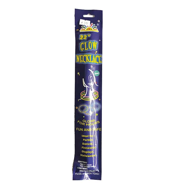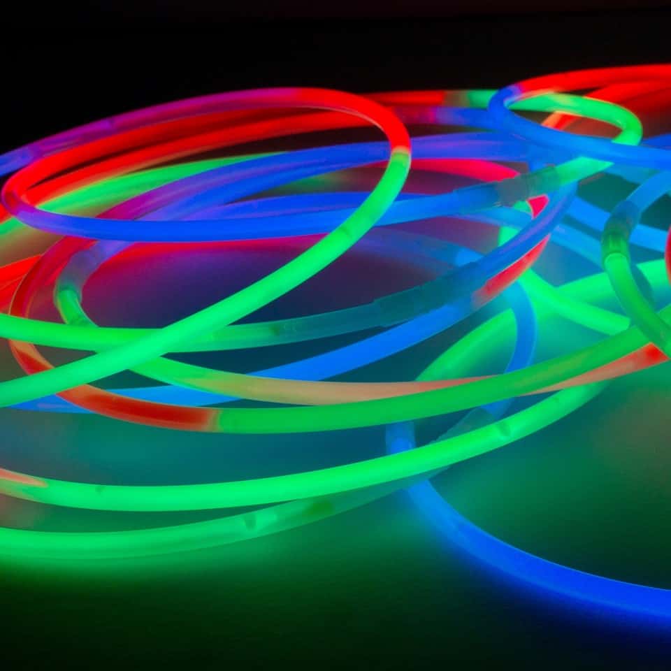 The GLOW-IN-THE-DARK NECKLACE are easy to activate and put together: bend each necklace along its length to get things glowing, pop them in the supplied connectors and you’ll be lit up for around 12 hours!