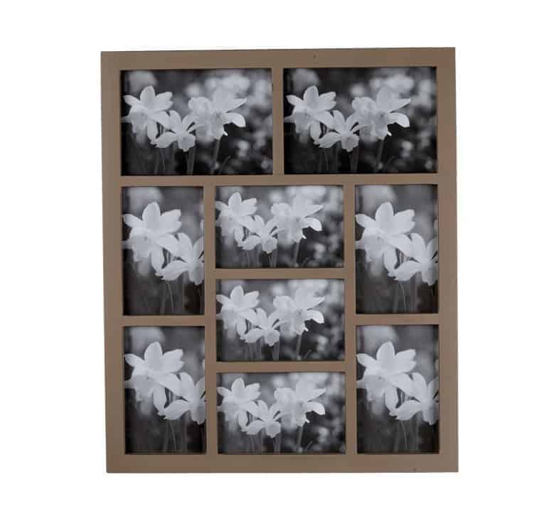 The Gallery 9 Aperture Frame Walnut has a 22mm wide rubberwood moulding with seven 4×6” and two 5×7” apertures.